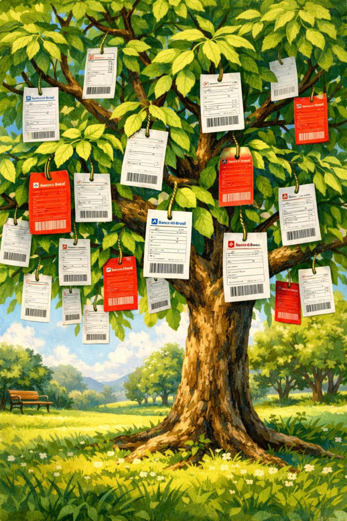 O ditado popular diz que devemos ter um filho, escrever um livro e plantar uma árvore. Fiz os três, mas o último quesito deixou a desejar. Talvez a semente fosse de procedência duvidosa, na árvore só nasce boleto, ao invés de fruta. Todo mês eu colho todos, levo-os ao banco e, cinco dias depois, começam a nascer novamente. Nunca usei adubo e nem água, mas têm vigor que resiste a tudo.